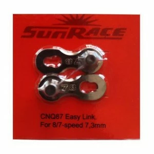- Caractéristiques : Maillon rapide pour chaine Sunrace Sram ou Shimano 7/8 Vitesses ( 7,3mm) / Installation sans outils