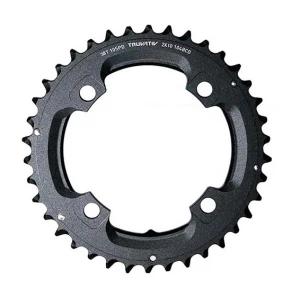 - Caractéristiques : Denture : 38 dents (à associer avec un petit plateau de 24 dents) / Compatible avec les pédaliers SRAM Truvativ double 4 branches avec un entraxe de 104mm (type X9 ou X0) / Compatibles avec les chaines 10 vitesses