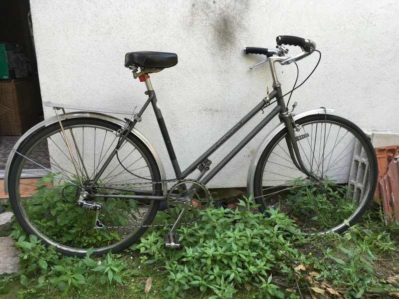 Ce vlo est un vlo pour les femmes de la marque Favorit. Il est produit en czechoslovakia, mais je ne sais pas dans quelle anne. C’est un vlo occasionn, je l’ai achete la dernire anne, mais c’tait dj un vlo d’occasion. Alors il est vieux mais quand mme dans un bon tat, le freinage du roue avant est nouveau. Il n’a pas un changement de vitesse. Le vlo marche encore trs bien, je l’ai utilis presque chaque jour et je n’tais pas due. Si vous voulez acheter le vlo, vous devez venir pour le prendre, parce que je n’ai aucune possibilit de le livrer.